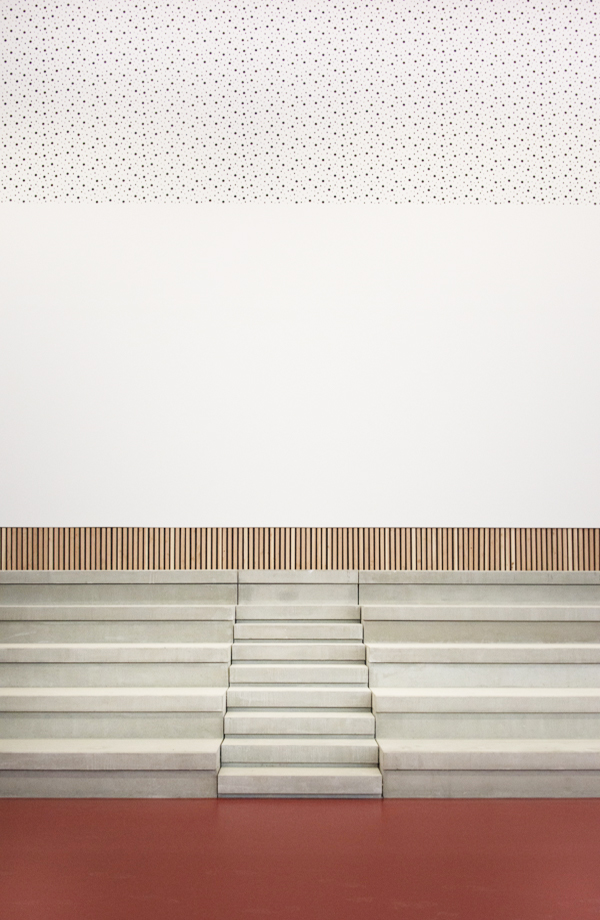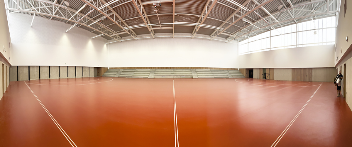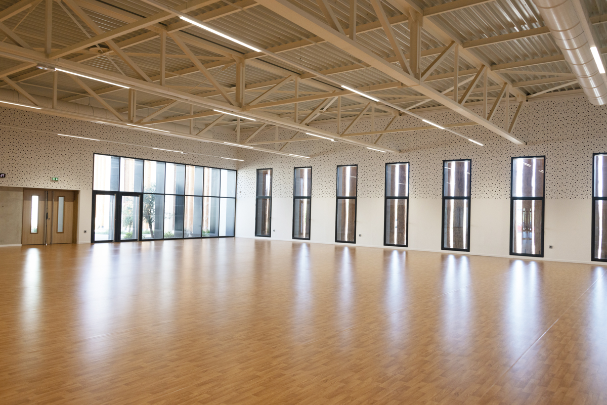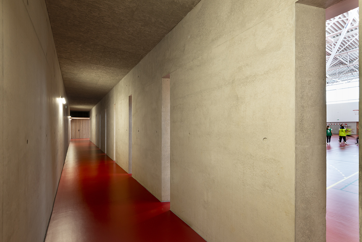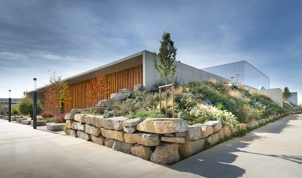 Ancré dans un paysage d’exception, le projet s’efface pour mieux révéler son territoire. Depuis les hauteurs de Notre-Dame-de-Grâce, la Halle des Sports s’inscrit avec justesse dans la trame du relief. Son retrait dessine un parvis ouvert aux échanges, reliant le site à la ville en devenir. Une noue paysagère enserre la parcelle, abolissant la clôture et préservant la mémoire des terres viticoles. Les talus plantés, issus des terres conservées, épousent les façades et régulent naturellement le climat intérieur, à la manière des caves semi-enterrées d’autrefois.